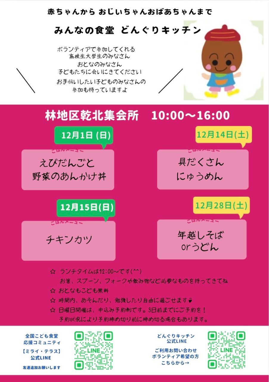 今月の『どんぐりキッチン』開催は、こちらです(^^)