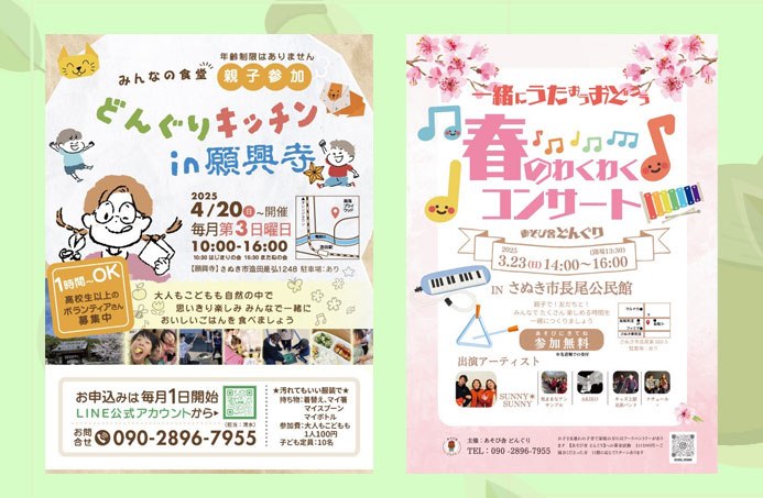 この絵は来月、さぬき市長尾公民館で開催予定のあそび舎どんぐり春のコンサートでお目見えしますよ!