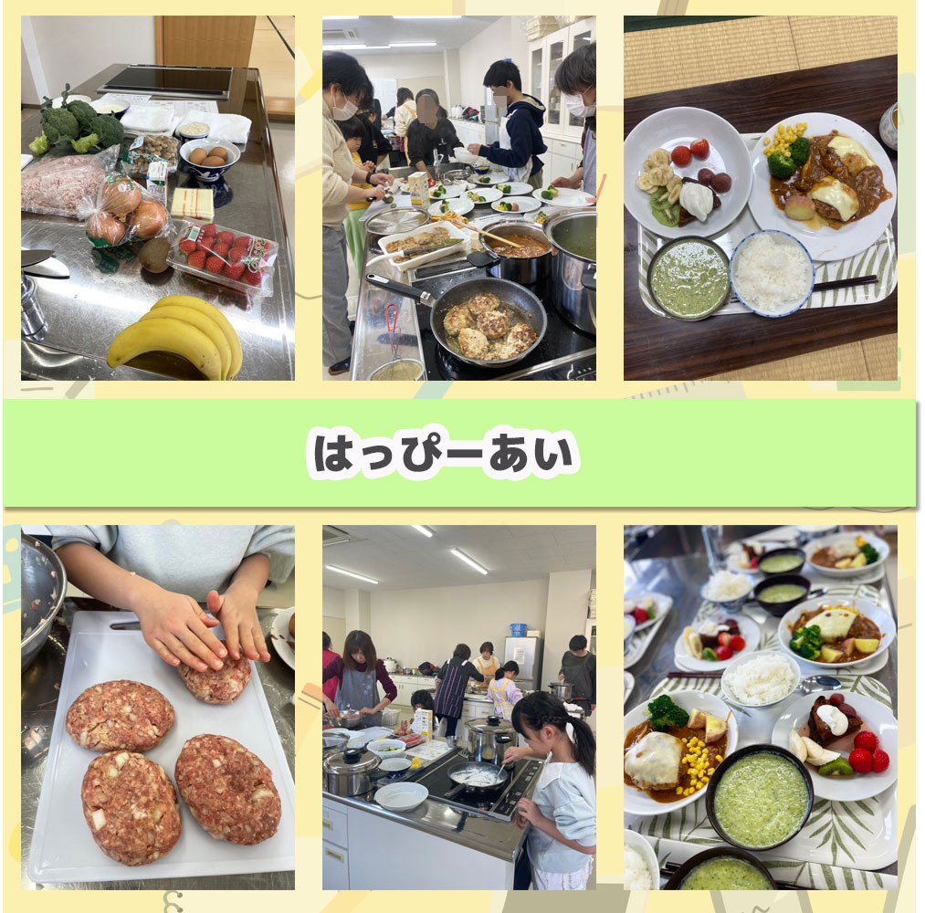 子どもと大人が一緒になって、楽しそうにハンバーグを作っていました。