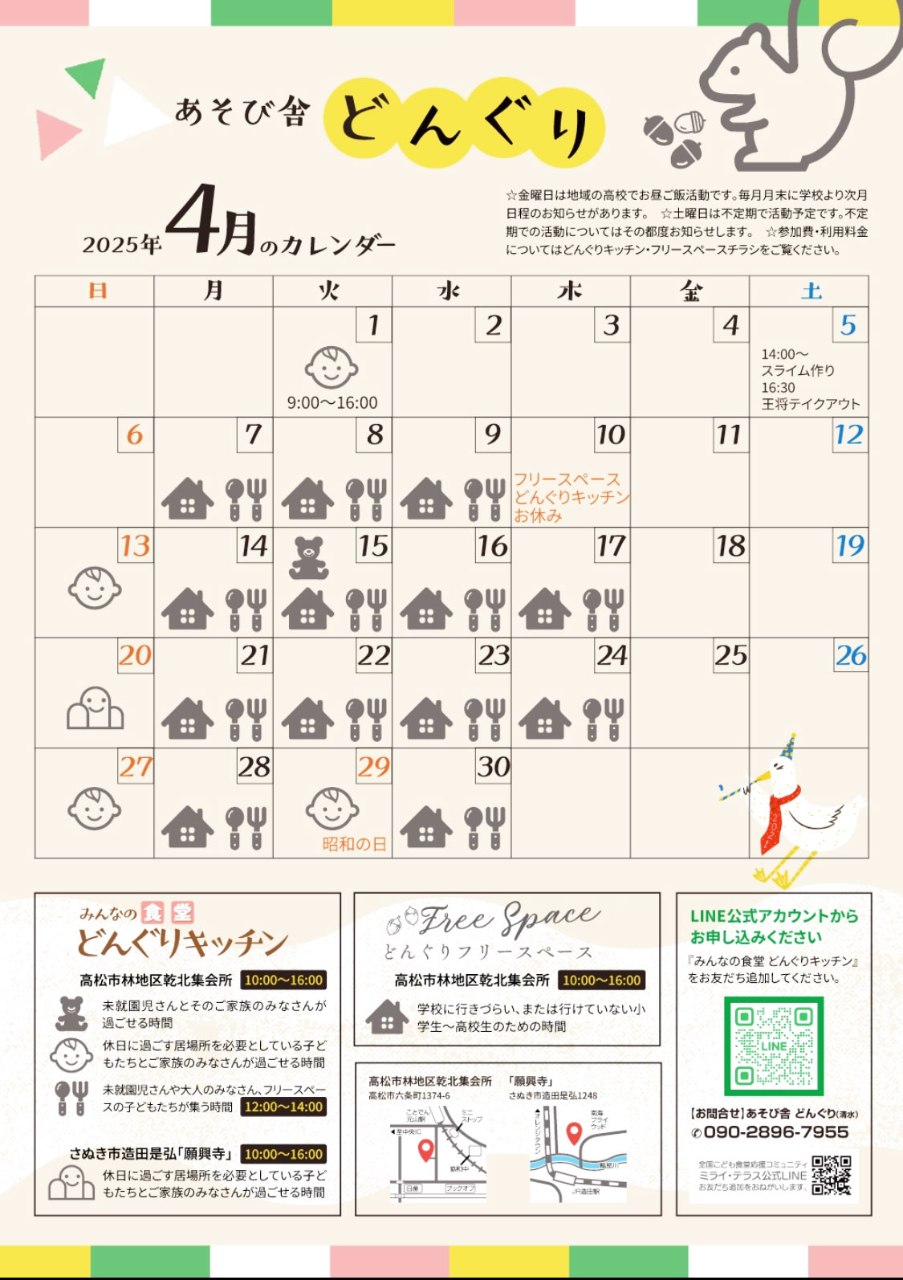 春休みに入って、2回目の開催となった『どんぐりキッチン』からのご報告です。
