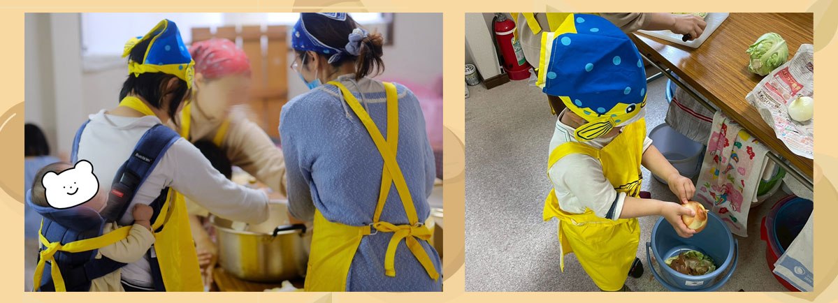 お昼の代金は子どもは100円で、お料理のお手伝いをしたり、小さなお子さんの相手をしたりすると無料になるという仕組みです。