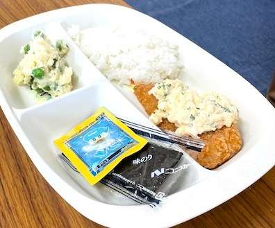 この日のメニューは、白身魚のフライと