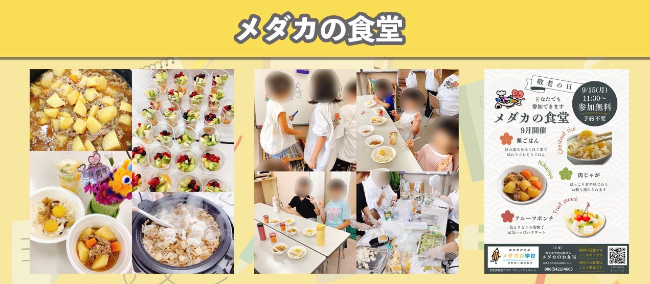 今回ご紹介した『メダカの食堂』や無料塾である『メダカの学校』も開催されています。