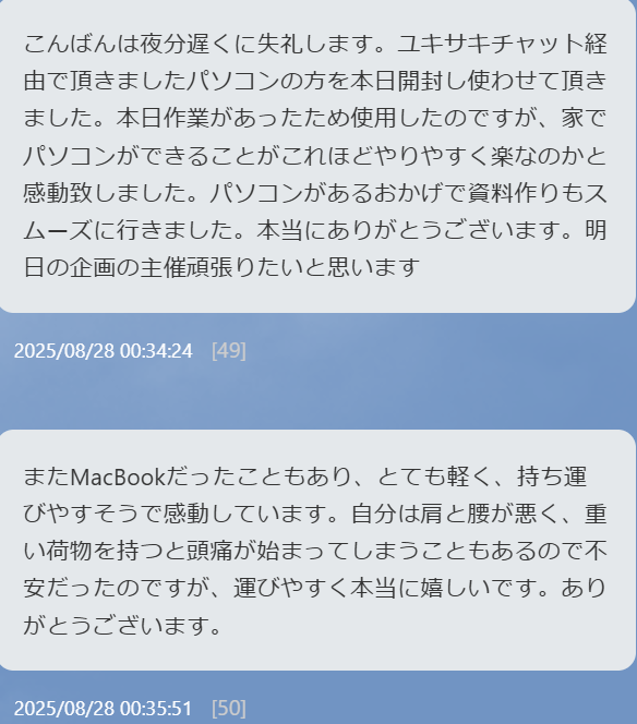 PCを受け取った方からは以下のような声が寄せられました。