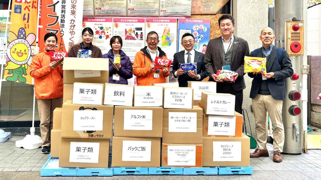 NTT西日本北九州支店様より食品をご寄贈いただきました!今回もお腹いっぱい大作戦のために社内で呼びかけ食品を集めてくださったそうで、社員のみなさまのあたたかさを感じています。