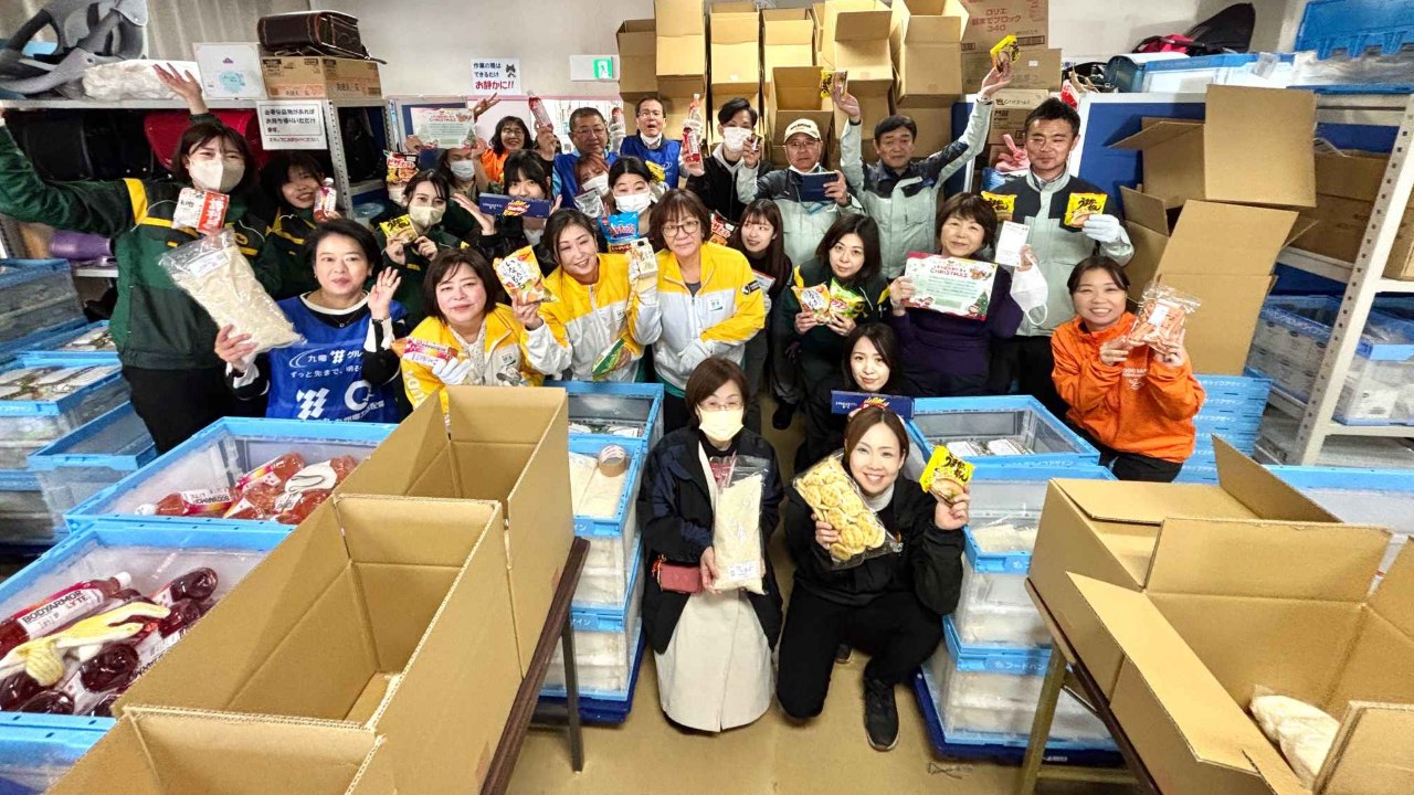 2025-12-09 14:31食品箱詰め作業2日目が無事終了!たくさんのボランティアさんがご参加くださいました!今日は地元企業をはじめとする22名の方々が足を運んでくださいました。作業前のご挨拶では、「こどもたちに届け!という想いで参加しました」「地元北九州のお役に立てれば!」「心を込めて丁寧に頑張ります!」と、それぞれ胸にある想いを共有してくださり、深く励まされました。 そして気がつけば450箱の箱詰めがあっという間に完了!最後の1箱が詰め終わった瞬間には自然と歓声があがり、達成感あふれる時間となりました。この取組が、多くの方の想いに支えられていることを改めて実感します。ご参加いただいたみなさまに心より感謝申し上げます。 【本日ご参加いただいたみなさま】 🎅株式会社サンキュードラッグ 様 🎅九州電力株式会社北九州支社 様 🎅公益財団法人健和会 様 🎅新日本熱学株式会社 様 🎅明治安田生命北九州支社 様 🎅ヤマト運輸北九州主管支店 様 🎅梅光学院大学 様 🎅ライフアゲインボランティアのみなさま2025-12-09 14:31食品箱詰め作業2日目が無事終了!たくさんのボランティアさんがご参加くださいました!今日は地元企業をはじめとする22名の方々が足を運んでくださいました。作業前のご挨拶では、「こどもたちに届け!という想いで参加しました」「地元北九州のお役に立てれば!」「心を込めて丁寧に頑張ります!」と、それぞれ胸にある想いを共有してくださり、深く励まされました。 そして気がつけば450箱の箱詰めがあっという間に完了!最後の1箱が詰め終わった瞬間には自然と歓声があがり、達成感あふれる時間となりました。この取組が、多くの方の想いに支えられていることを改めて実感します。ご参加いただいたみなさまに心より感謝申し上げます。 【本日ご参加いただいたみなさま】 🎅株式会社サンキュードラッグ 様 🎅九州電力株式会社北九州支社 様 🎅公益財団法人健和会 様 🎅新日本熱学株式会社 様 🎅明治安田生命北九州支社 様 🎅ヤマト運輸北九州主管支店 様 🎅梅光学院大学 様 🎅ライフアゲインボランティアのみなさま