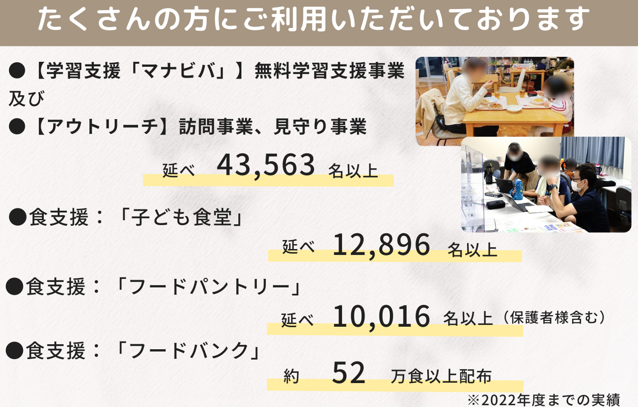 学習支援マナビバや子ども食堂などが大事な時間にもなっているというお声が届いております。