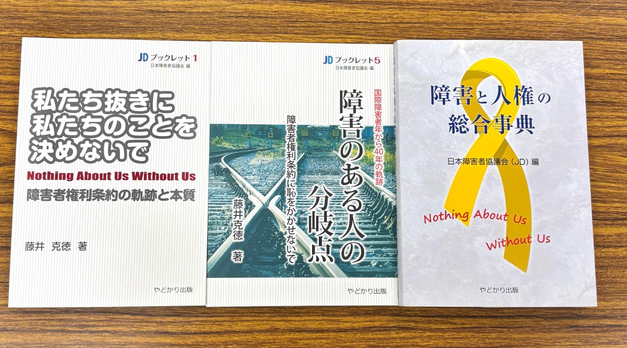 社会啓発を目的に、障害者権利条約や優生思想など、障害分野の重要トピックを取り扱った冊子や書籍の販売を行なっています。2023年には幅広い団体や研究者とのつながりを活かし、障害分野に関する全般を解説する「障害と人権の総合事典」を編纂しました。