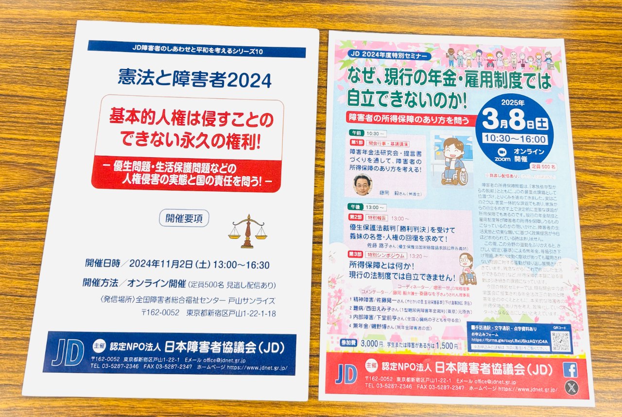 毎年11月と3月にセミナーを開催しているほか、不定期で学習会を企画しています。登壇者には障害分野に詳しい専門家や研究者だけでなく、障害のある人や、優生保護法裁判などの訴訟の原告にもご発言をお願いし、当事者の声を発信しています。