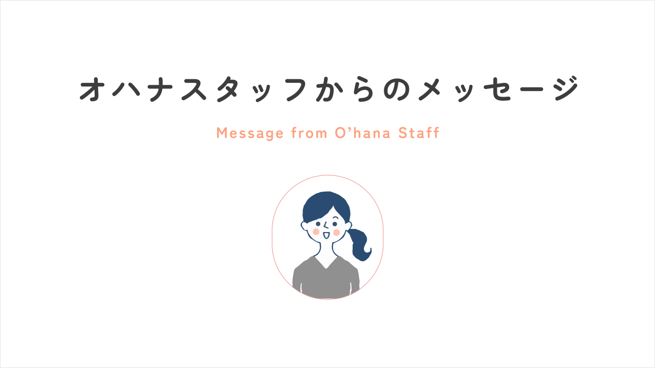 2024-12-02 00:52【オハナのスタッフからのメッセージ】オハナにて子育て支援員をしている元保育士Nさんのメッセージをご紹介いたします!2024-12-02 00:52【オハナのスタッフからのメッセージ】オハナにて子育て支援員をしている元保育士Nさんのメッセージをご紹介いたします!