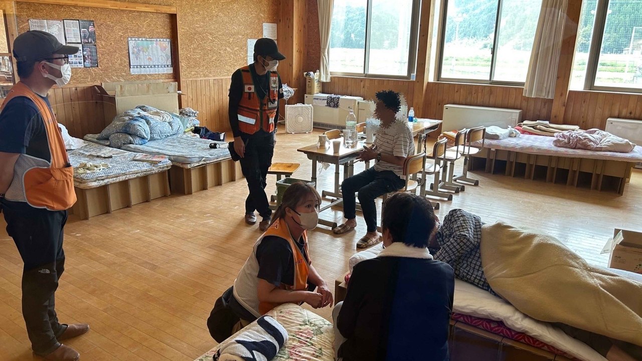 ふるさと体験実習館に到着。管理者から情報収集。避難者は4名とのこと。ライフラインについて確認し、創傷と感染症リスクについて注意喚起を行い、掲示用ポスターの配布を行った。