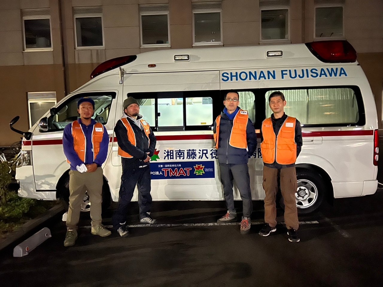 TMATは能登半島地震の被災地向けて、本日23時頃関東(神奈川県藤沢)より先遣隊(医師1名、看護師2名、ロジ1名の計4名)が出発しました。