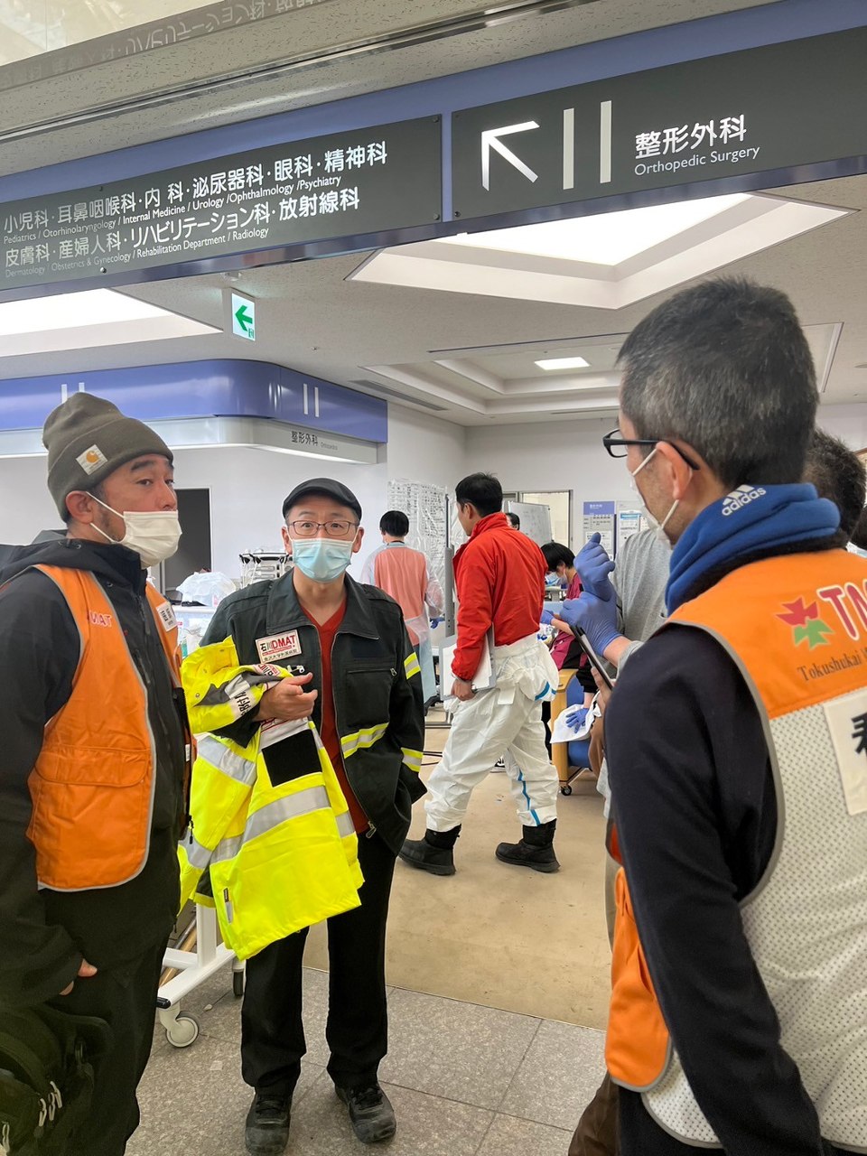 【能登半島地震支援 先遣隊 輪島市で活動開始】先遣隊第1版藤沢チームは輪島市内で避難所での情報収集、支援を開始しています。避難所での急病患者の病院搬送も行いました。引き続き輪島市内の病院、市役所、保健所等で連携して活動していきます。
