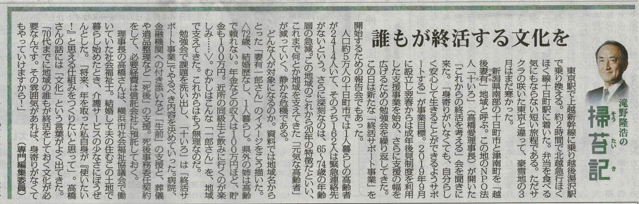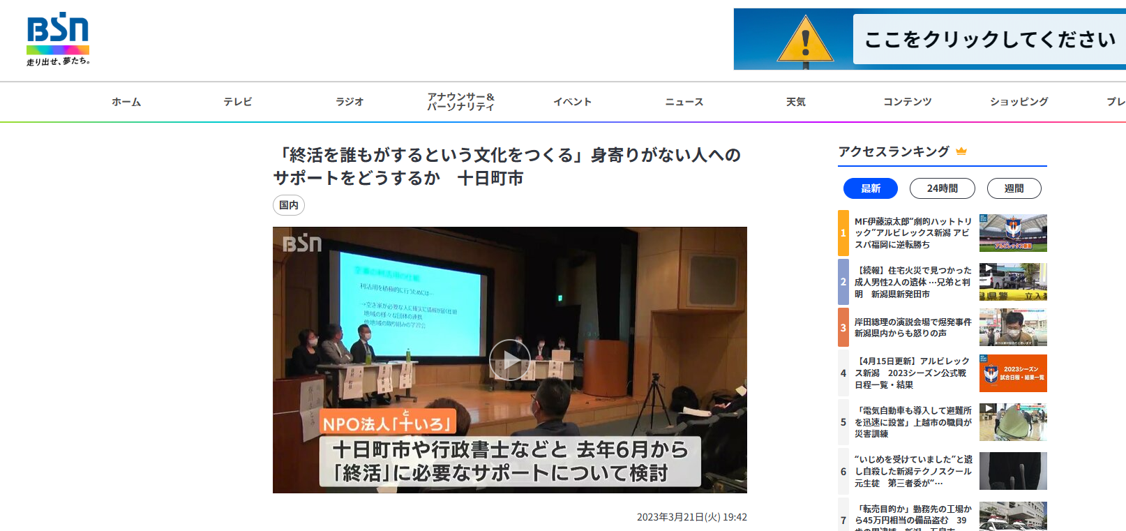 3月18日に十日町市、津南町との共催で開催いたしました終活セミナーですが、様々なメディアで取り上げていただきました。