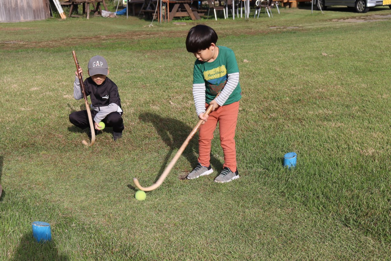 ↑羊の角を模したゴルフクラブでパターゴルフ!この2人の少年は1回づつホールインワンをやってくれました!