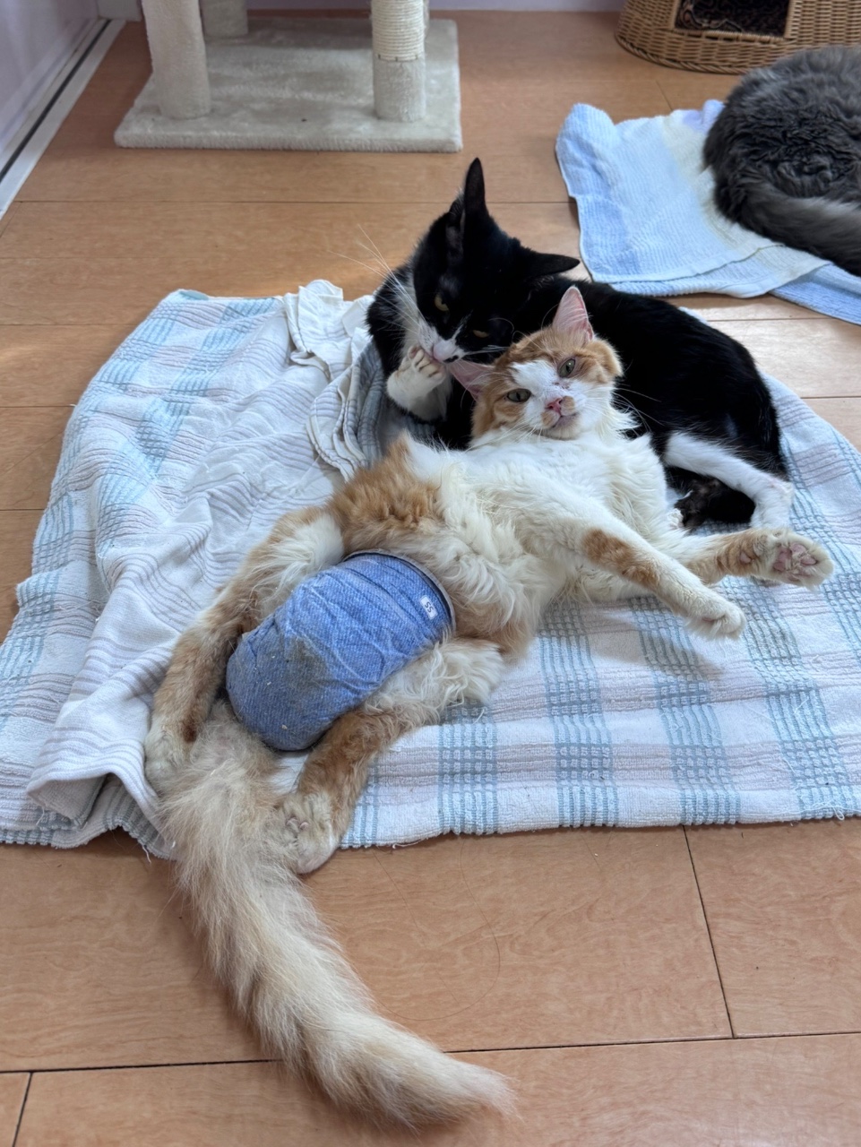 さのまる君、オシッコがなかなか出てないことに気付いて通院しました。結石が見つかり、療法食などで様子を見ていたのですが…尿道を広げる手術をしてもらいました。
