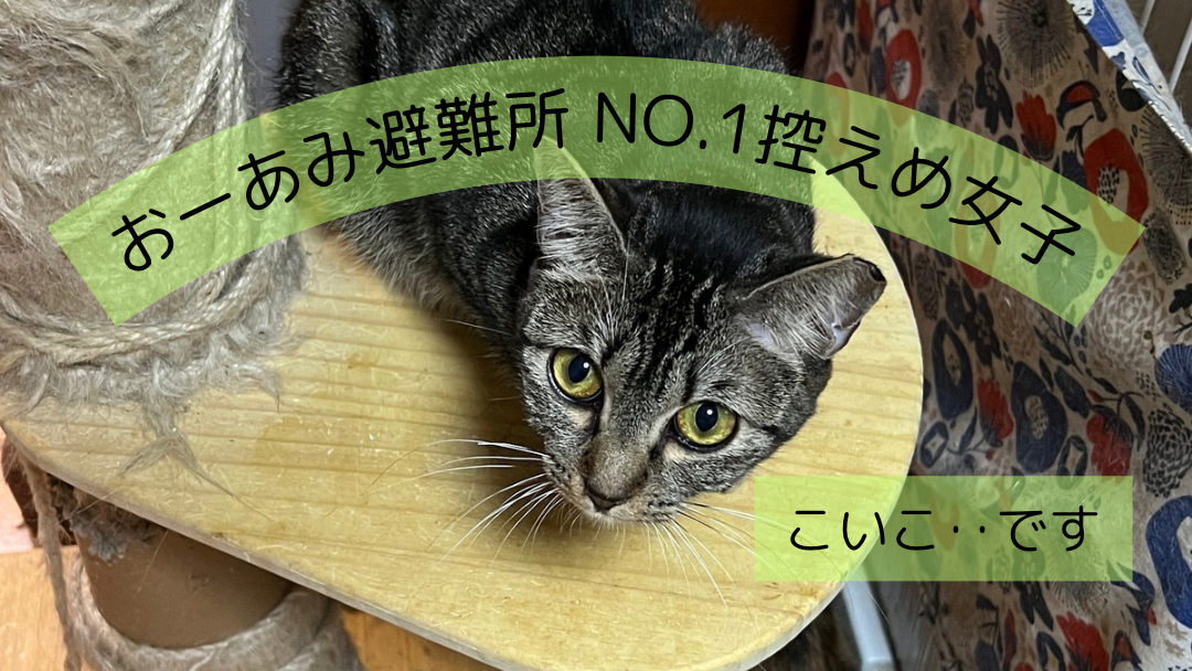 おーあみ避難所No.1控えめ女子「こいこ」ちゃんです。千葉県内で、姉妹の「うすこ」ちゃんと一緒に保護されました。