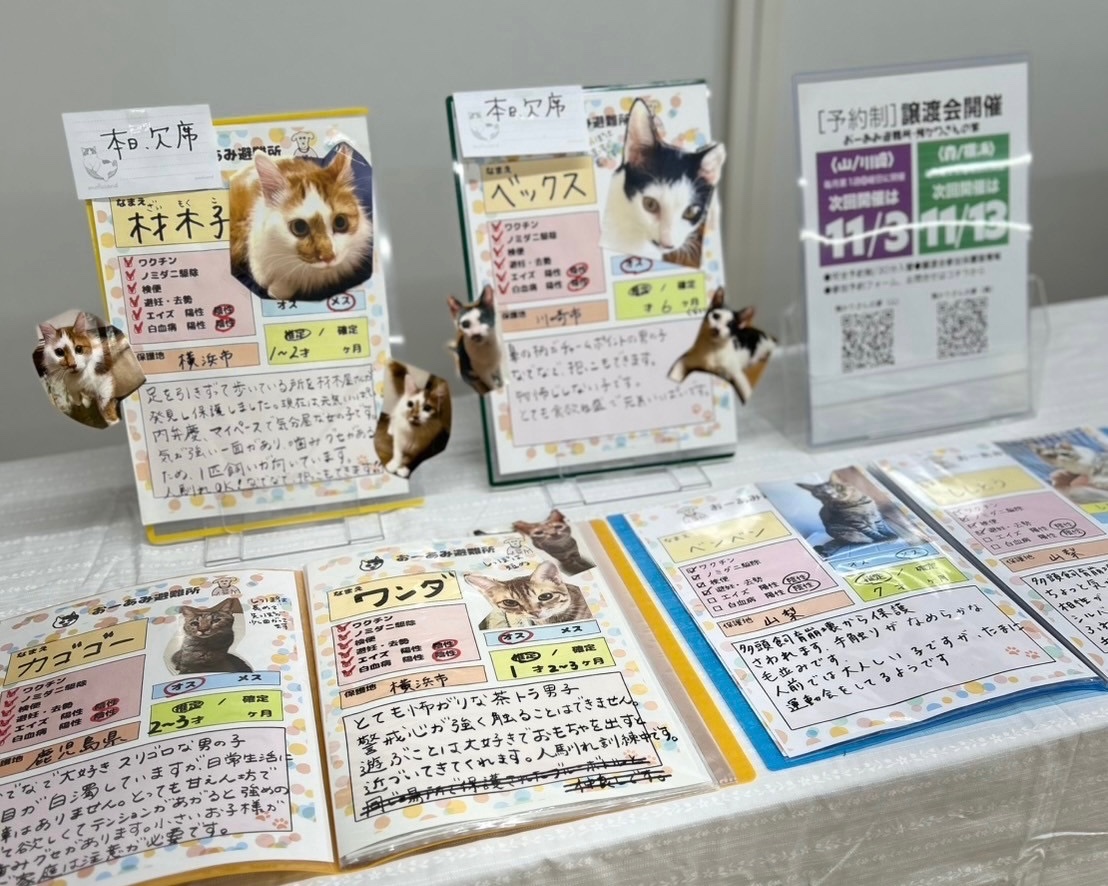 次回の保護猫の譲渡会は 、11月10日(日)横浜市中区の島忠ホームズ新山下店です。