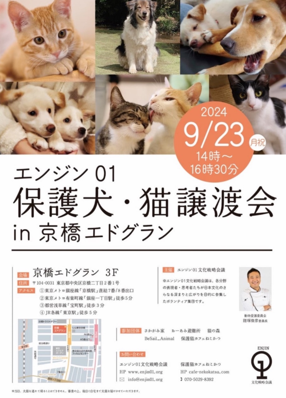 9/23(月)に行われたエンジン01保護犬•猫譲渡会in京橋エドグランに参加してきました。