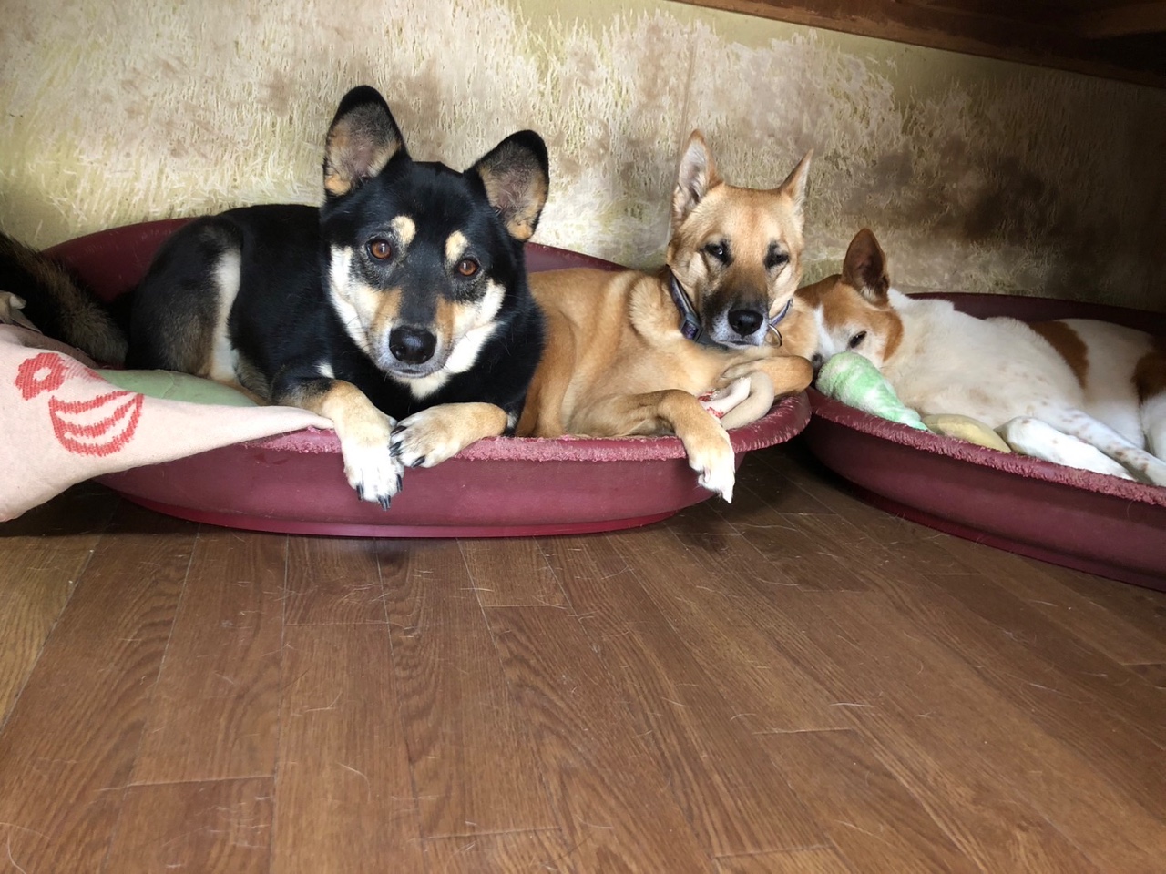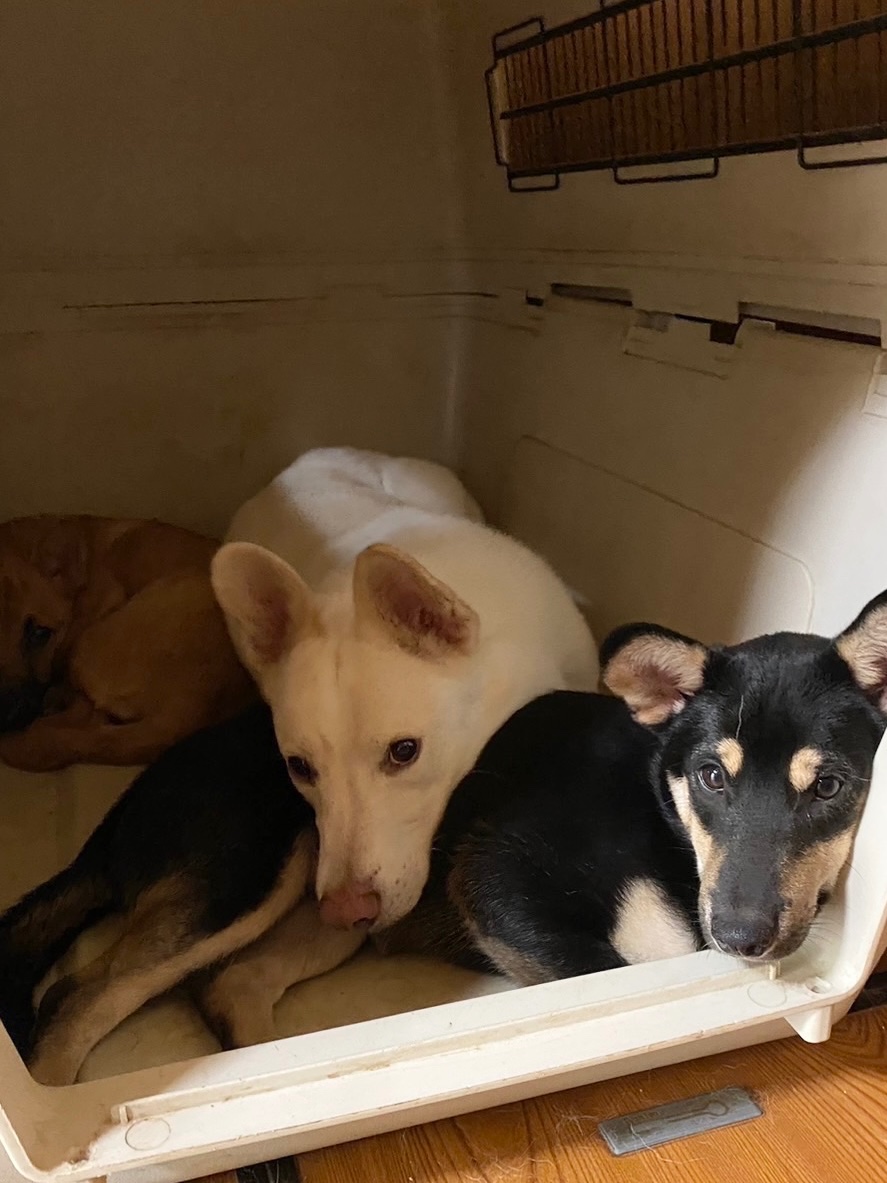 保護当時は警戒心は強いけど、犬達同士で楽しそうにしていました。