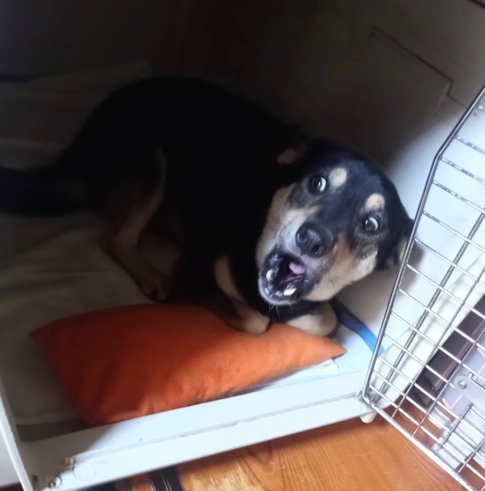 ただ自分のテリトリーのクレート内では「嫌な事しないでね!」とちょっと鼻先に皺を寄せる時もあります。