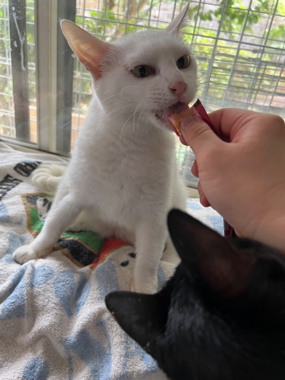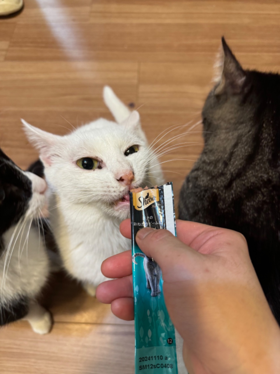 その後も怖がりで控えめでしたが、ちゅーるの時だけはぐいぐいでした笑