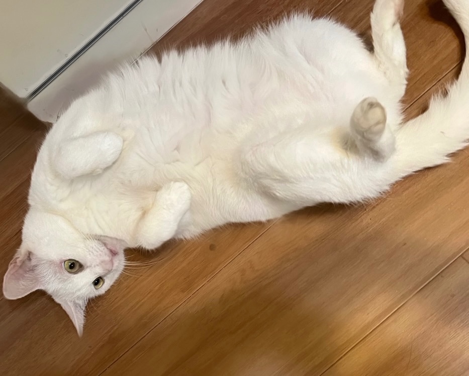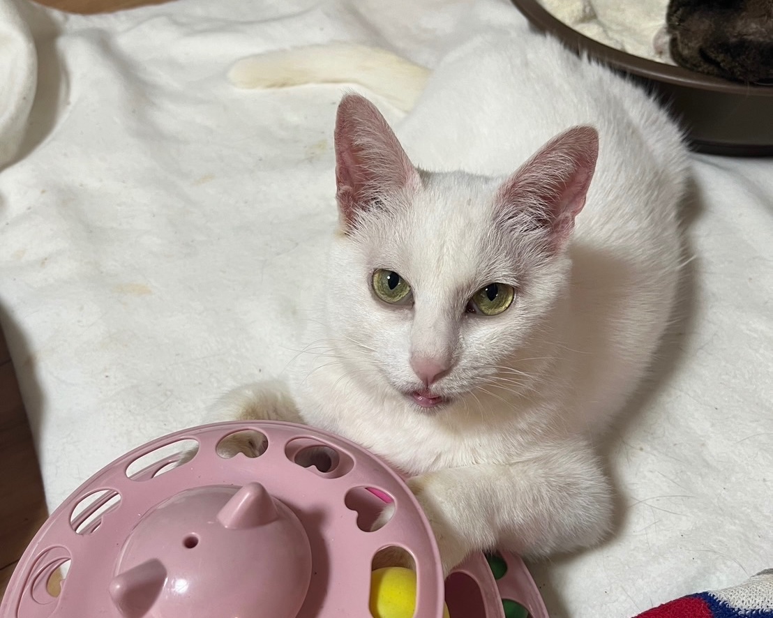 女の子なので、小柄な美しい白猫ちゃんに成長しました。