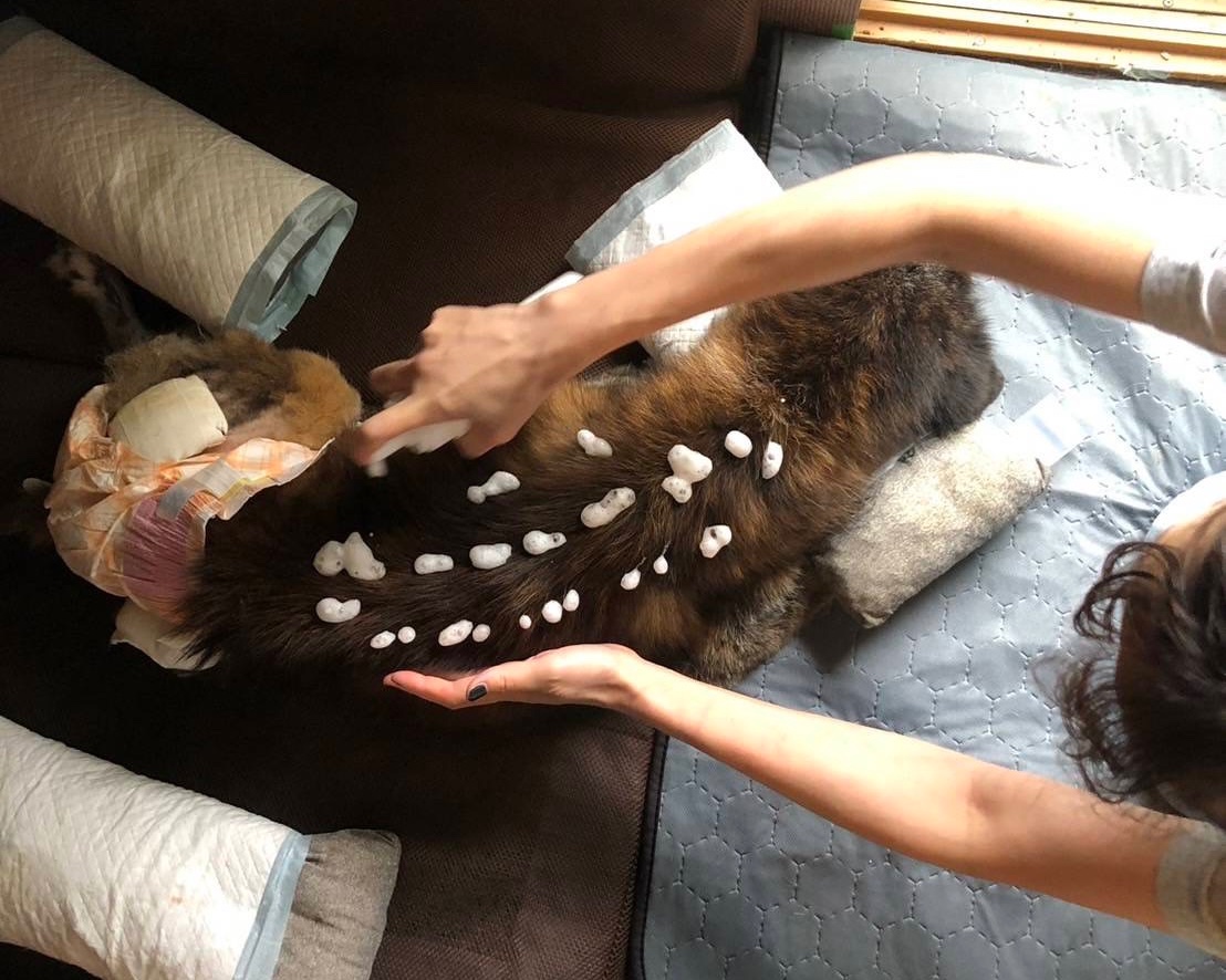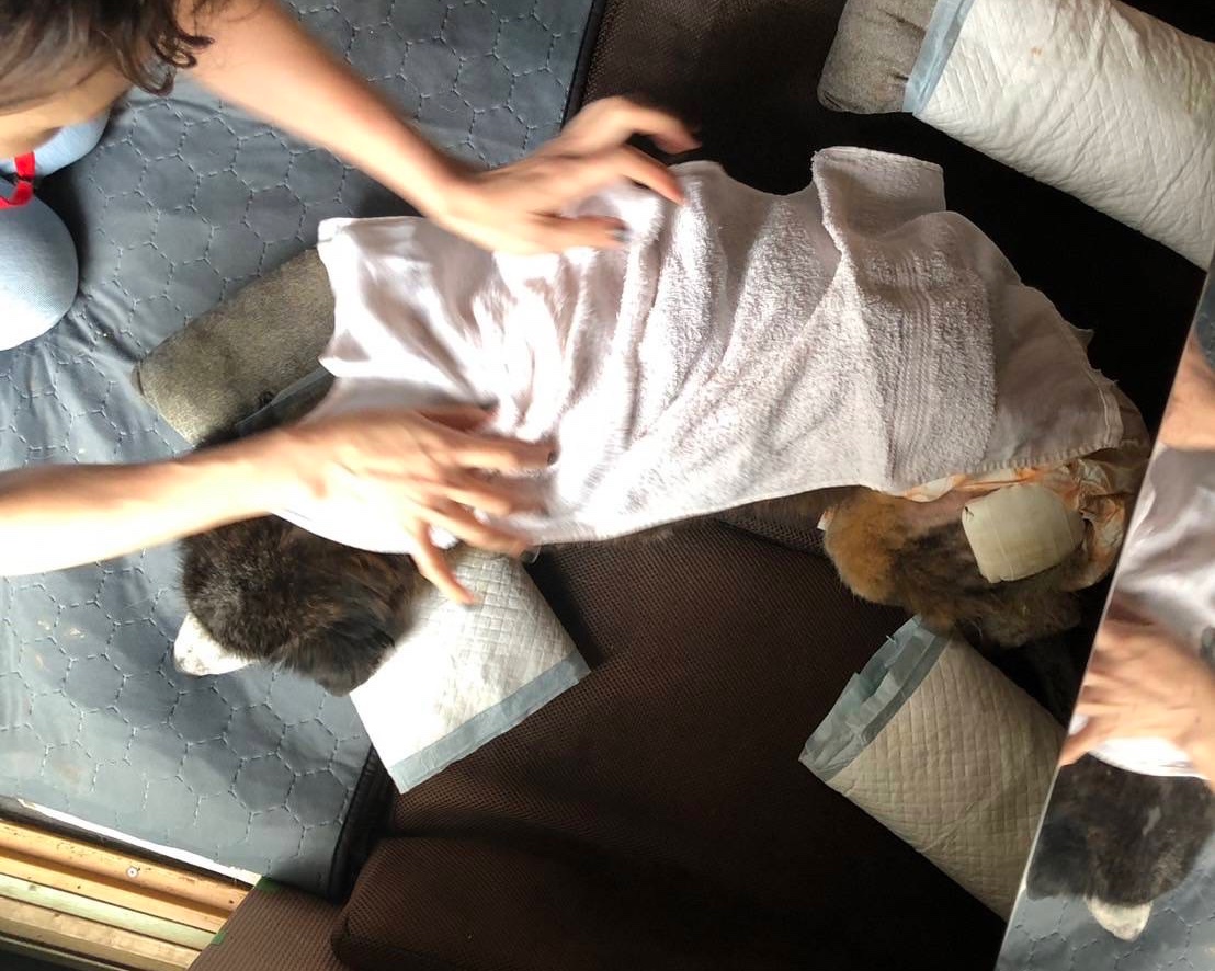 傷の洗浄や褥瘡部分を縫い合わせたりと‥ソイビーンさん、とっても頑張りました!