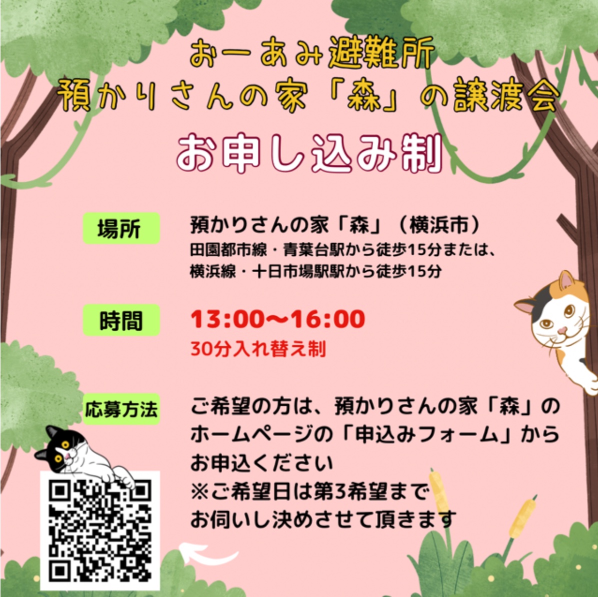 預かりさんの家〈森〉での譲渡会は毎月第2水曜日に開催しています。