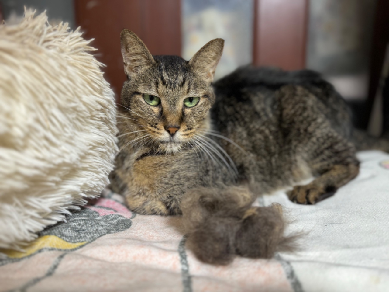 ケージの中を掃除しながら、猫ちゃんの様子もチェック。