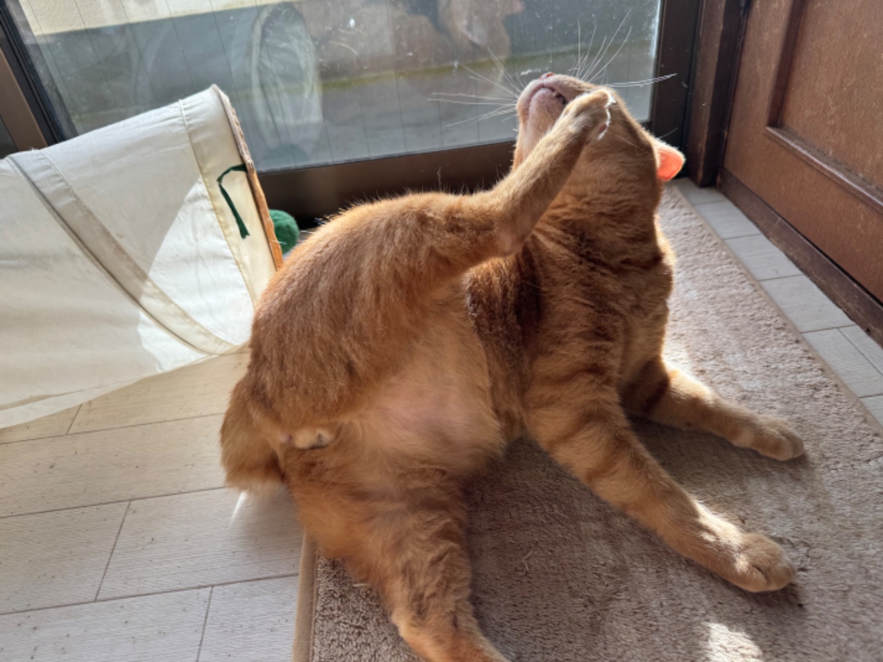 甘えてモード発動すると、身体を足にスリスリ、グイグイと押し付けてきます。