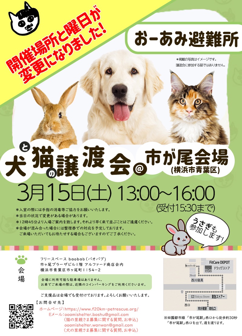 次回の保護猫の譲渡会は 3月15日(土)横浜市青葉区市ヶ尾会場です。