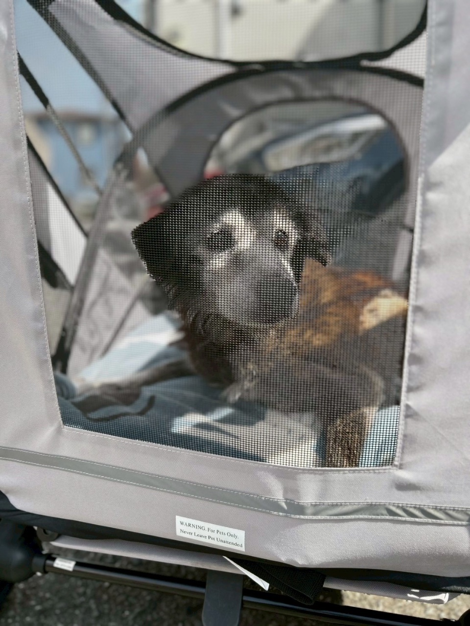 晴れた日はバギーに乗って、まったりお散歩に行って日光浴します。