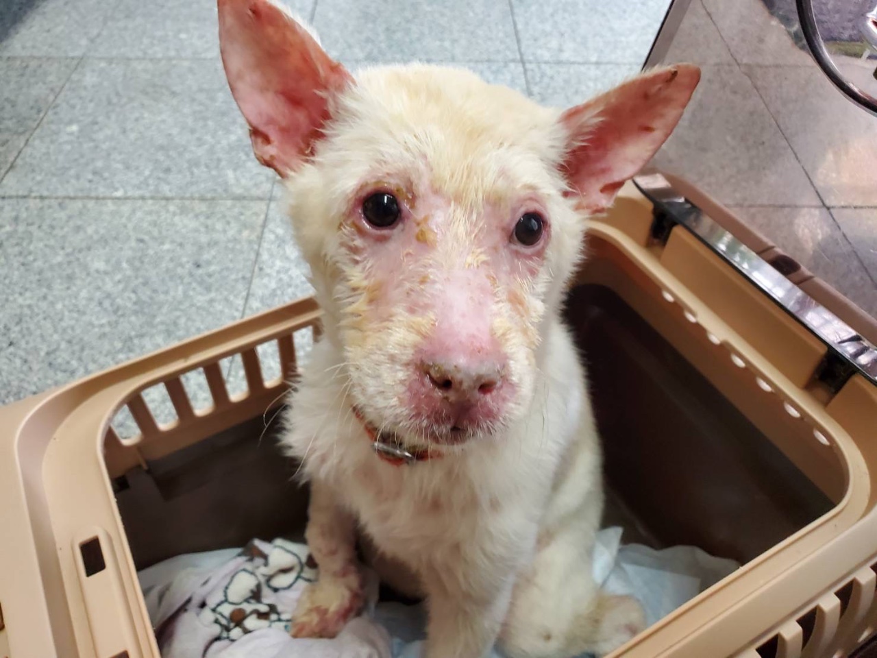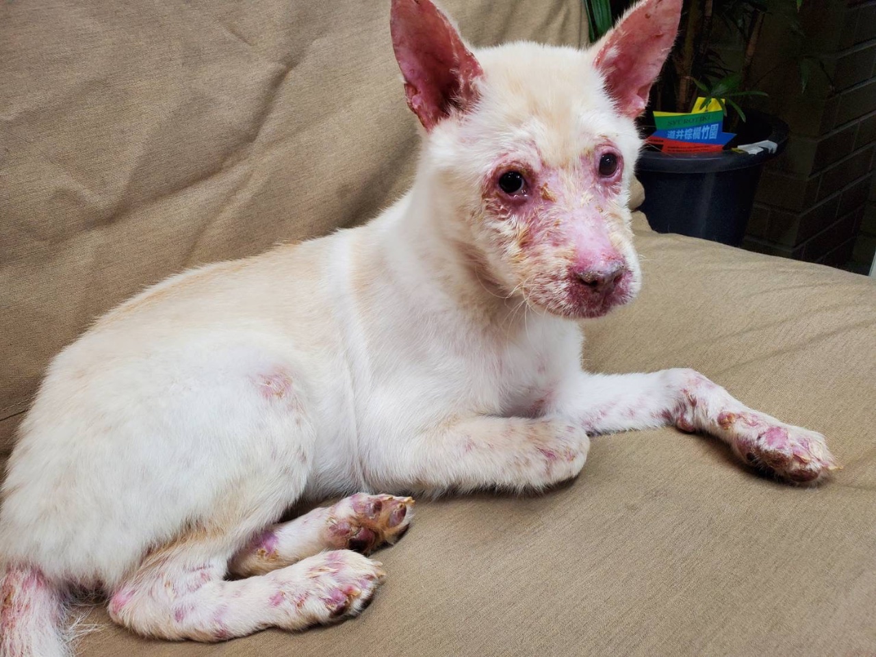 7兄妹で保護され、1匹だけ皮膚が弱くて顔が腫れている子がいました。