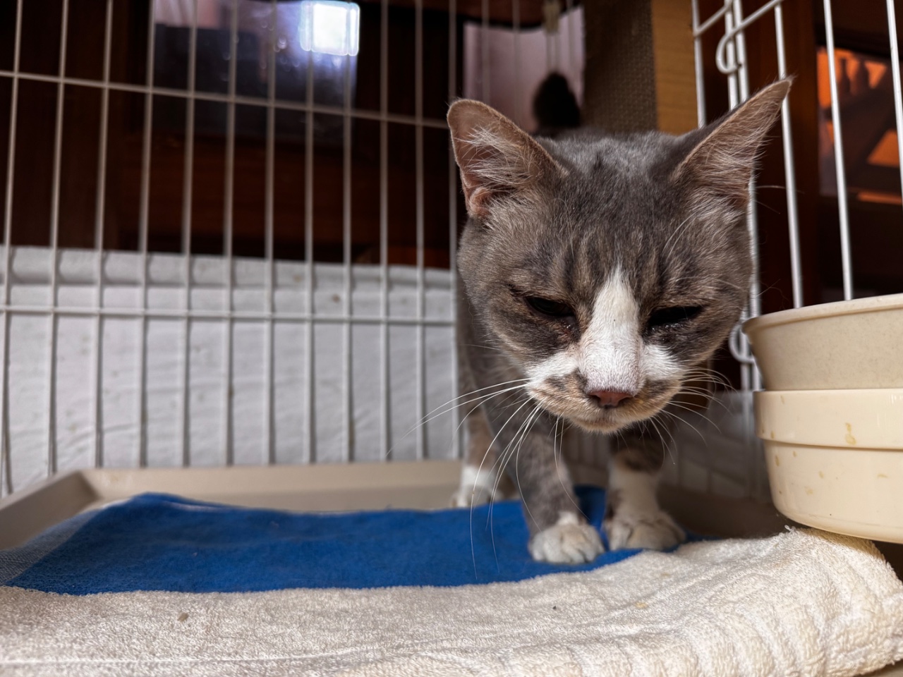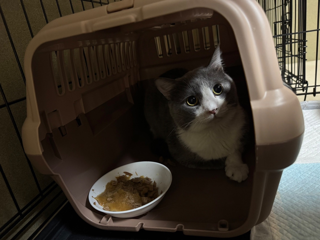多頭飼育で暮らしていて、繁殖制限の為にキャリーで飼われていた猫ちゃんを2月頃から少しずつ保護しました。