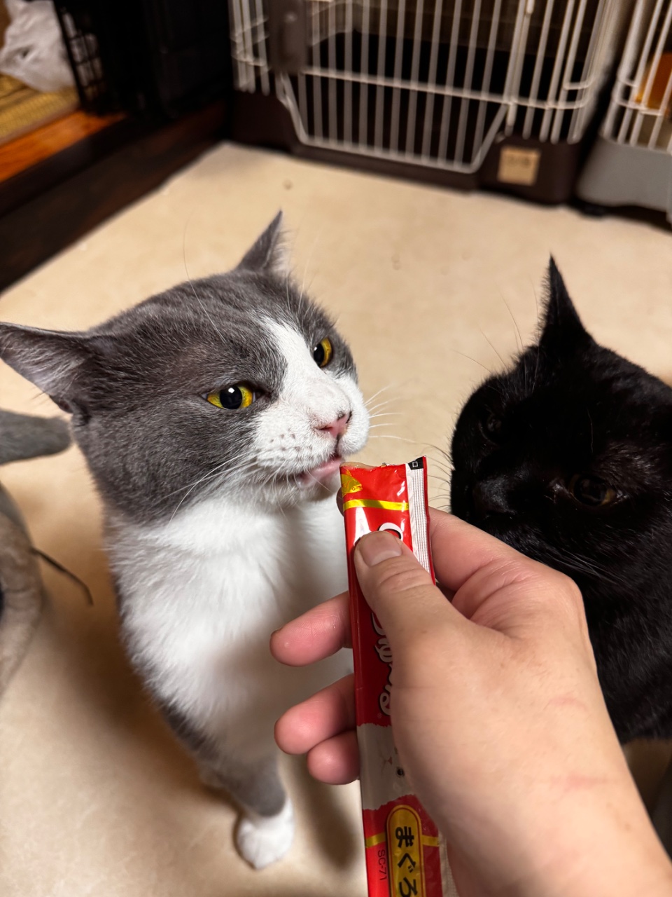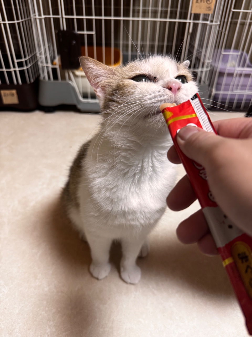 最初はチュールも無反応でしたが、今や「大好き!」になりました(。>∀<。)
