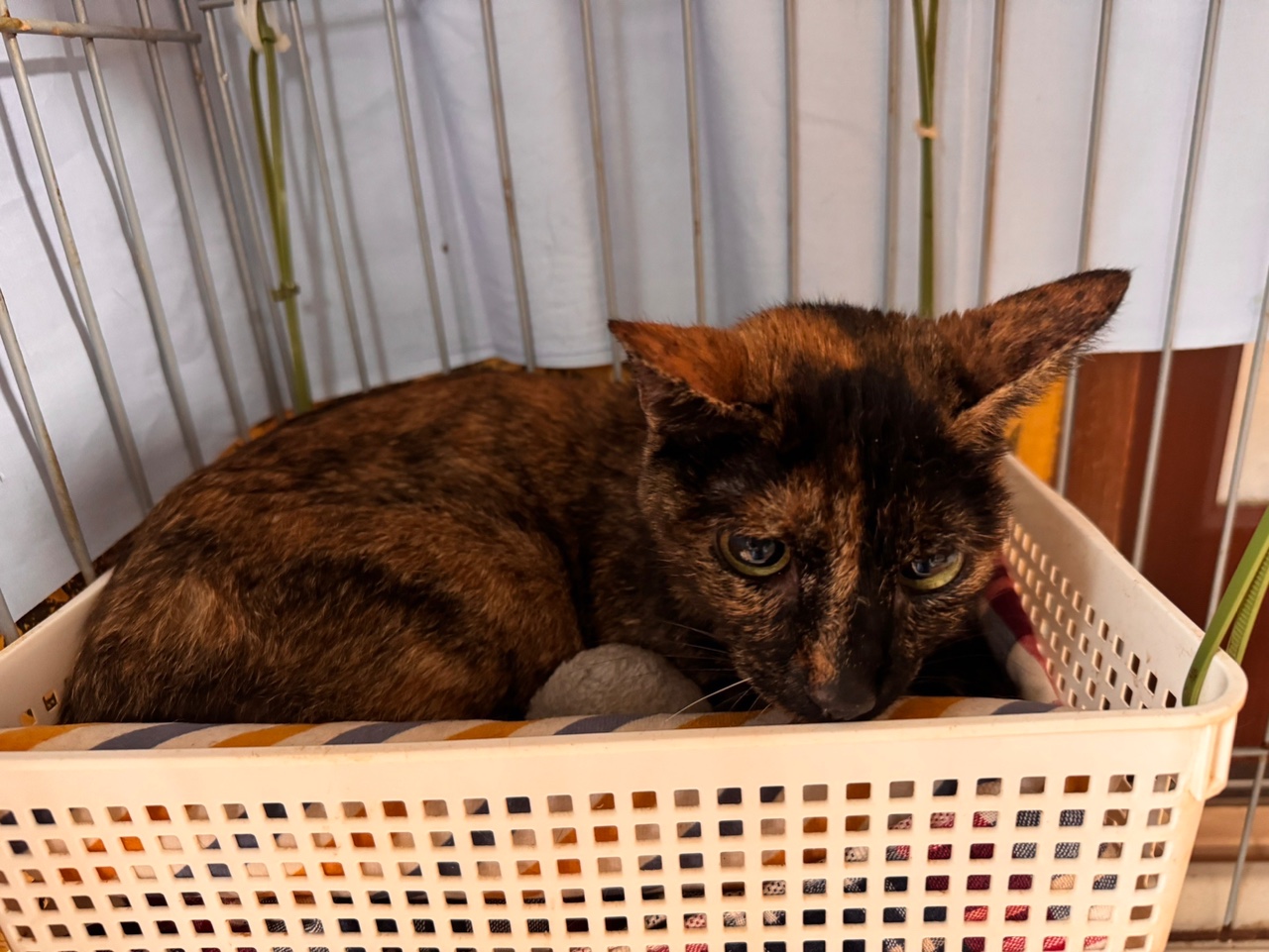 ハント君と一緒に猫のシナモンちゃんもシェルターに保護されています。