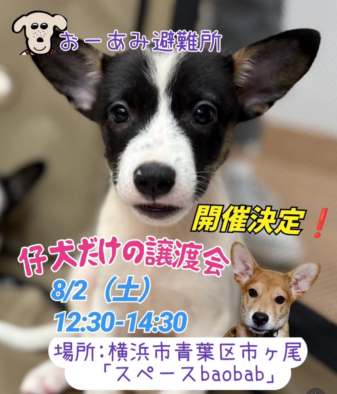 次回の保護犬の譲渡会は 、8/2(土)青葉区市ヶ尾会場にて参加します。