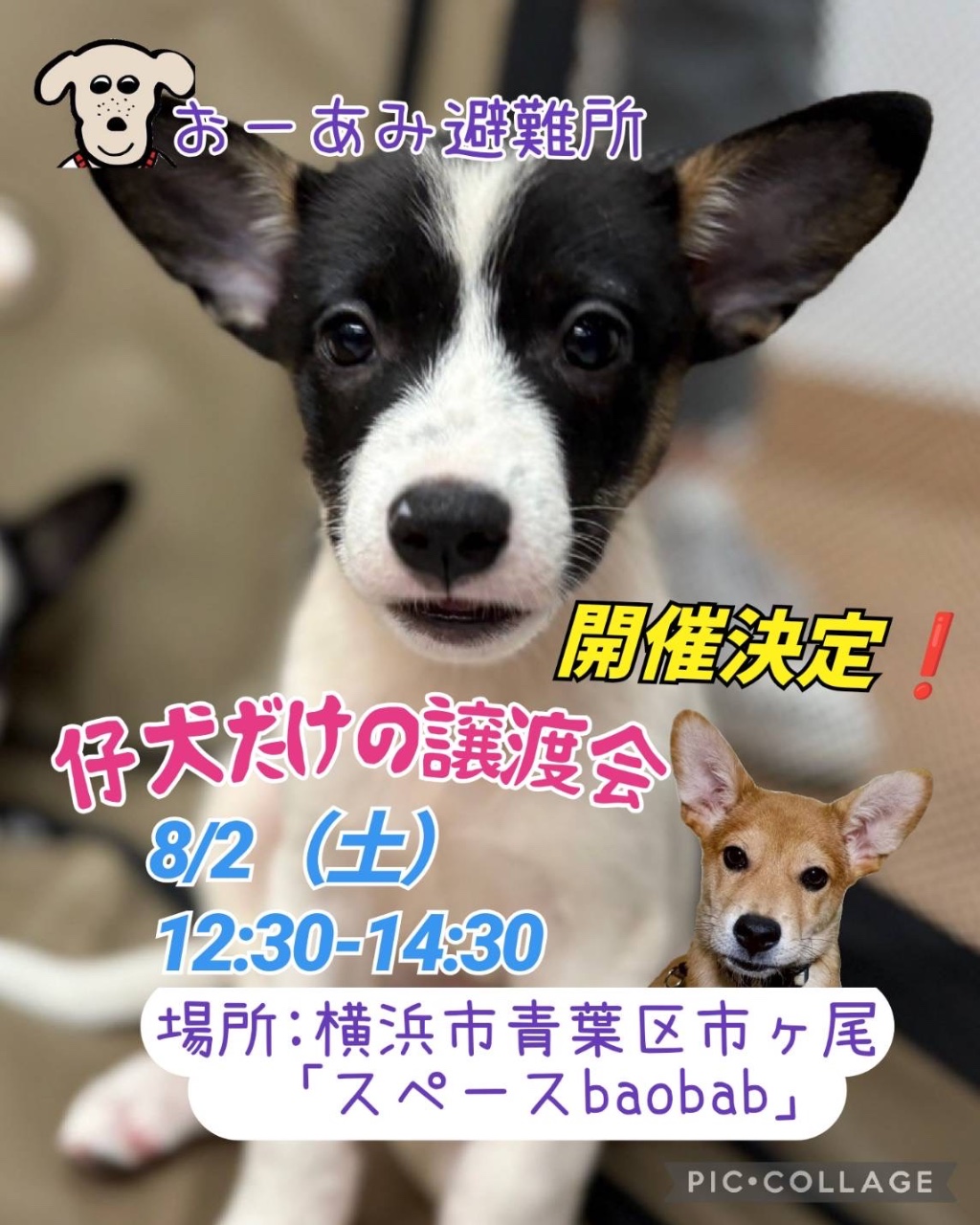 【譲渡会】8/2市ヶ尾会場にて子犬譲渡会、8/3おーあみ避難所シェルターにて子猫譲渡開催しました。
