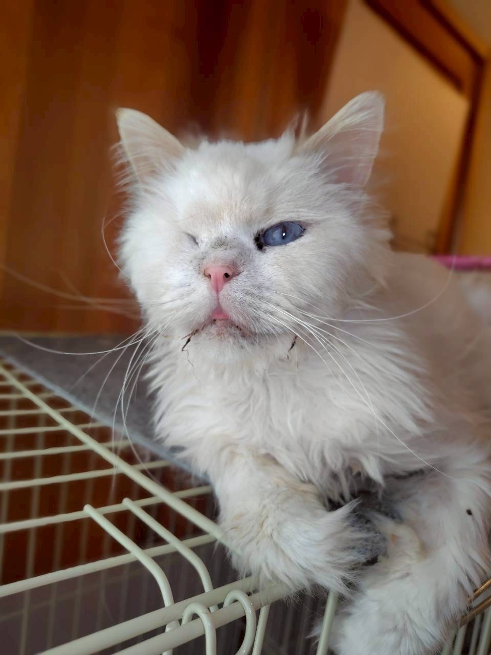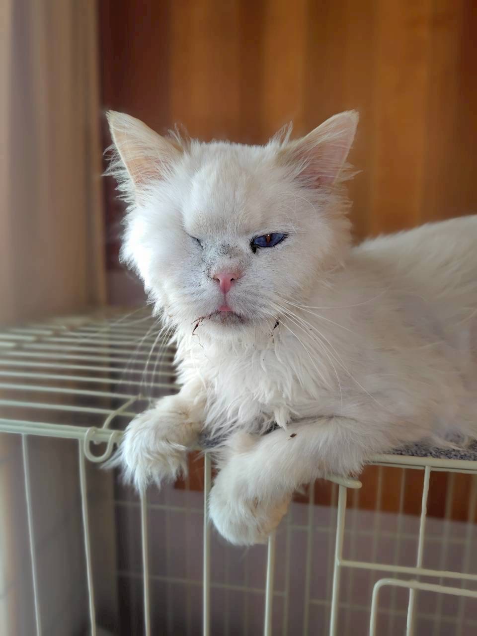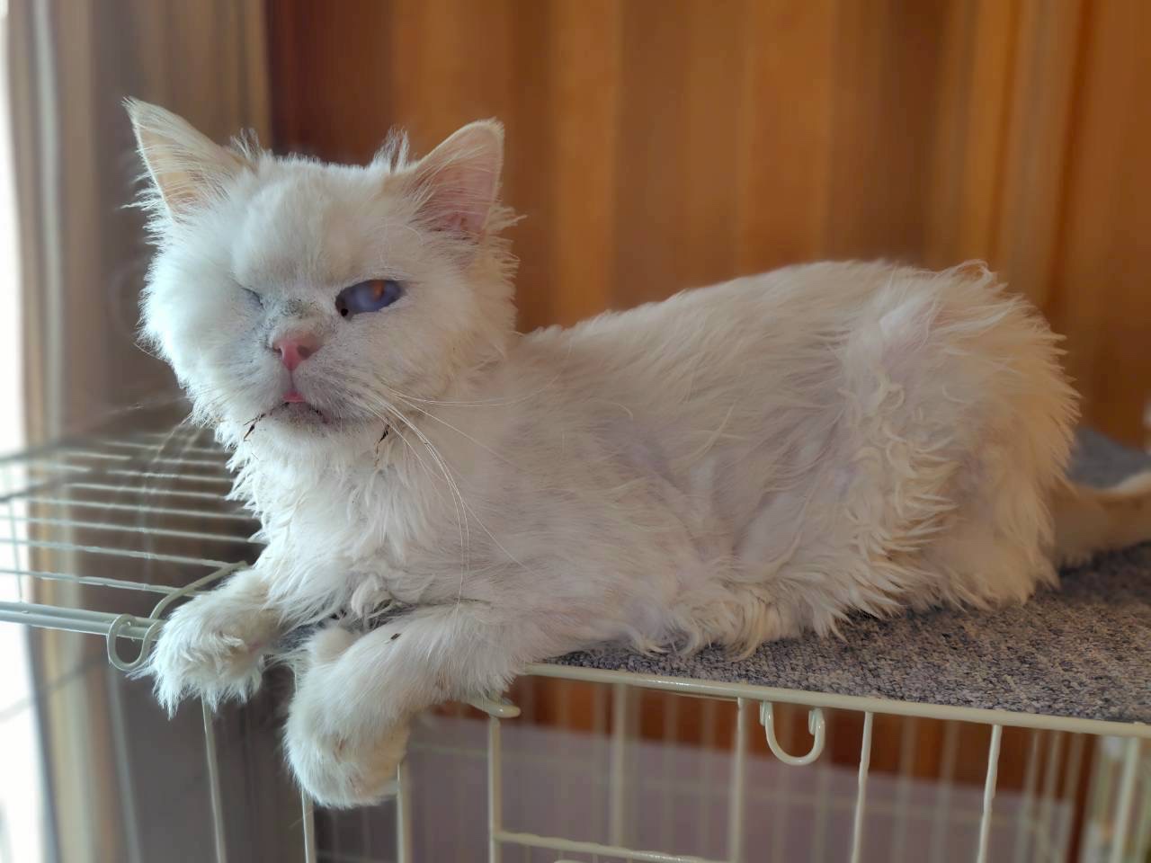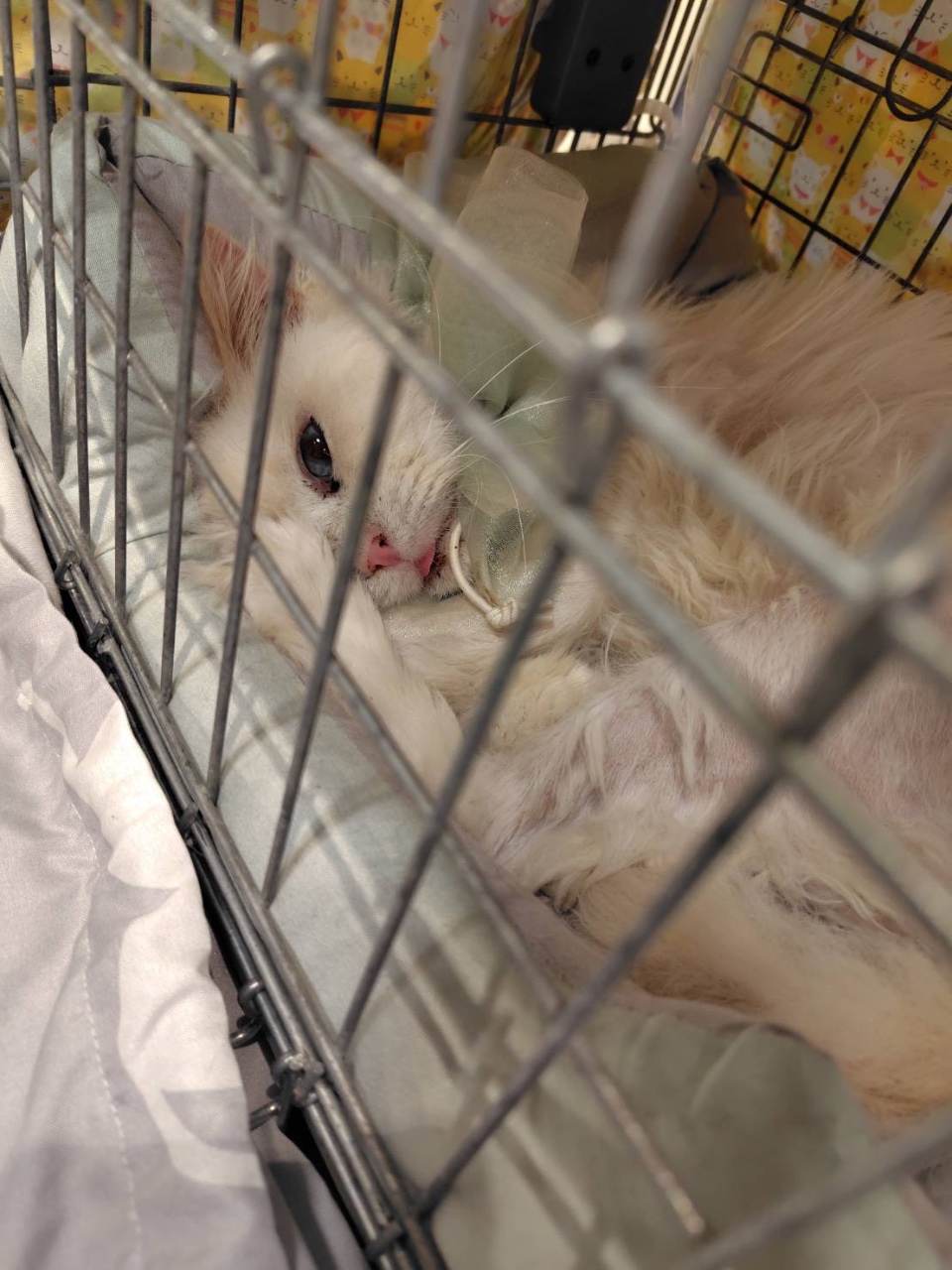 保護時から右目が涙目で、獣医さんに診てもらったところ視力もないということだったので眼摘出手術をしました。