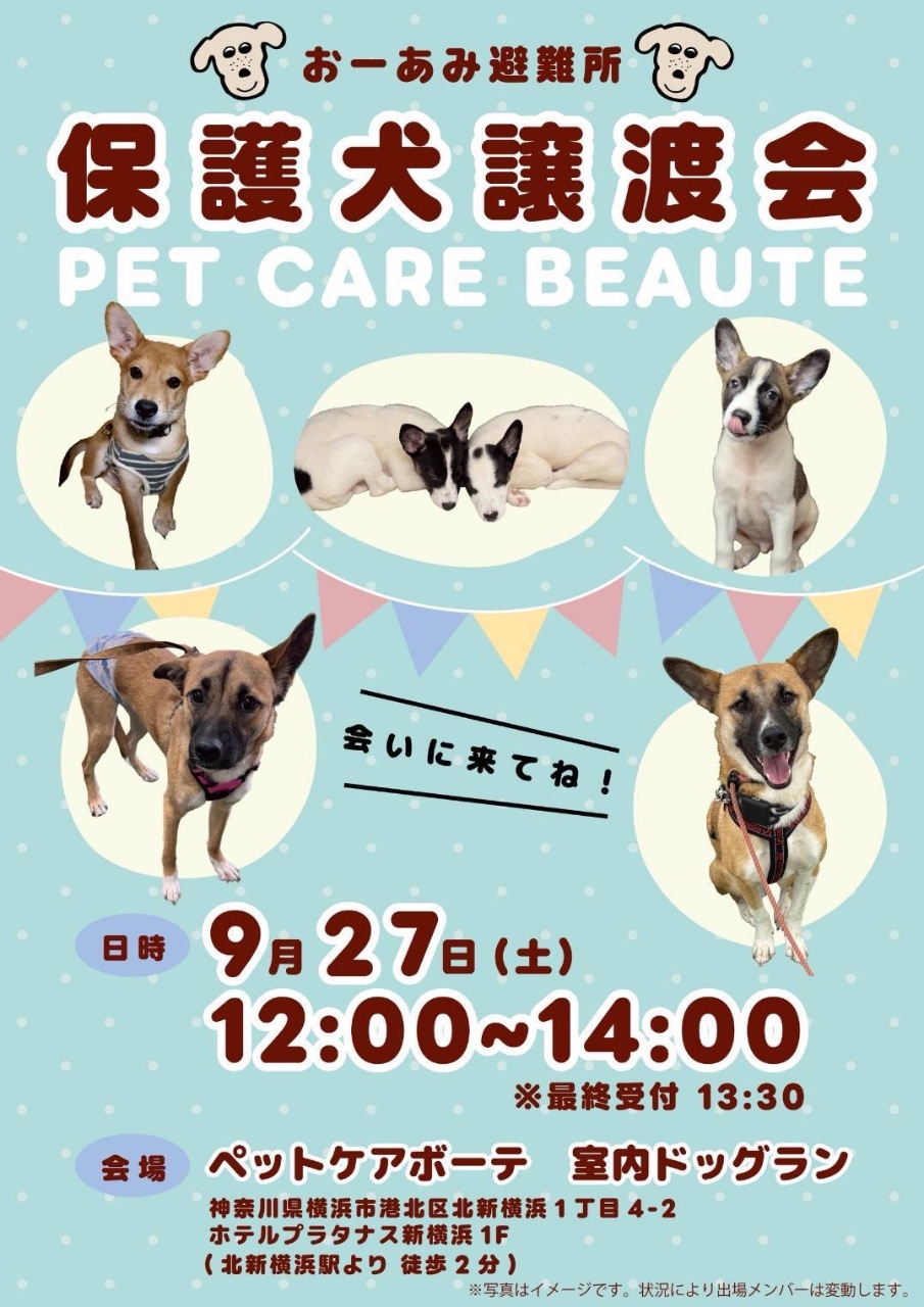 9月27日(土)横浜市港北区ペットケアボーテ室内ドッグランで保護犬譲渡会でした。