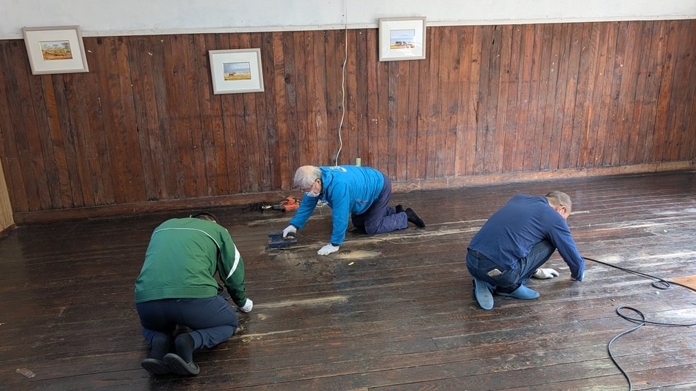 篠伊知郎 建築士のご指導のもと、本校舎2階多目的室の床を修繕する