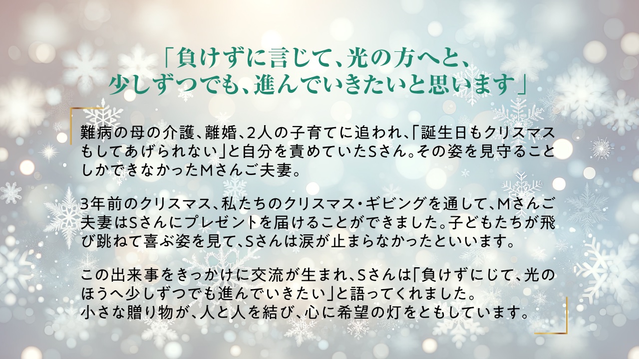 そんな想いから始まったのが、クリスマス・ギビング・アクション。