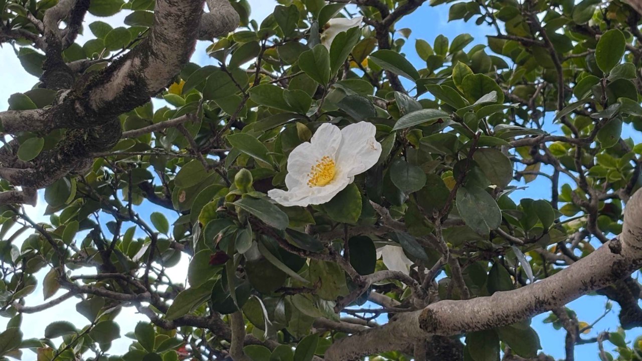 大原美術館に冬の知らせが届きました。 美術館正面の門の隣に植えてある、白山茶花が開花しています。寒い時期に咲く花で、この花が咲くと冬の到来を改めて感じます。 ご来館の際は、ぜひご覧ください。