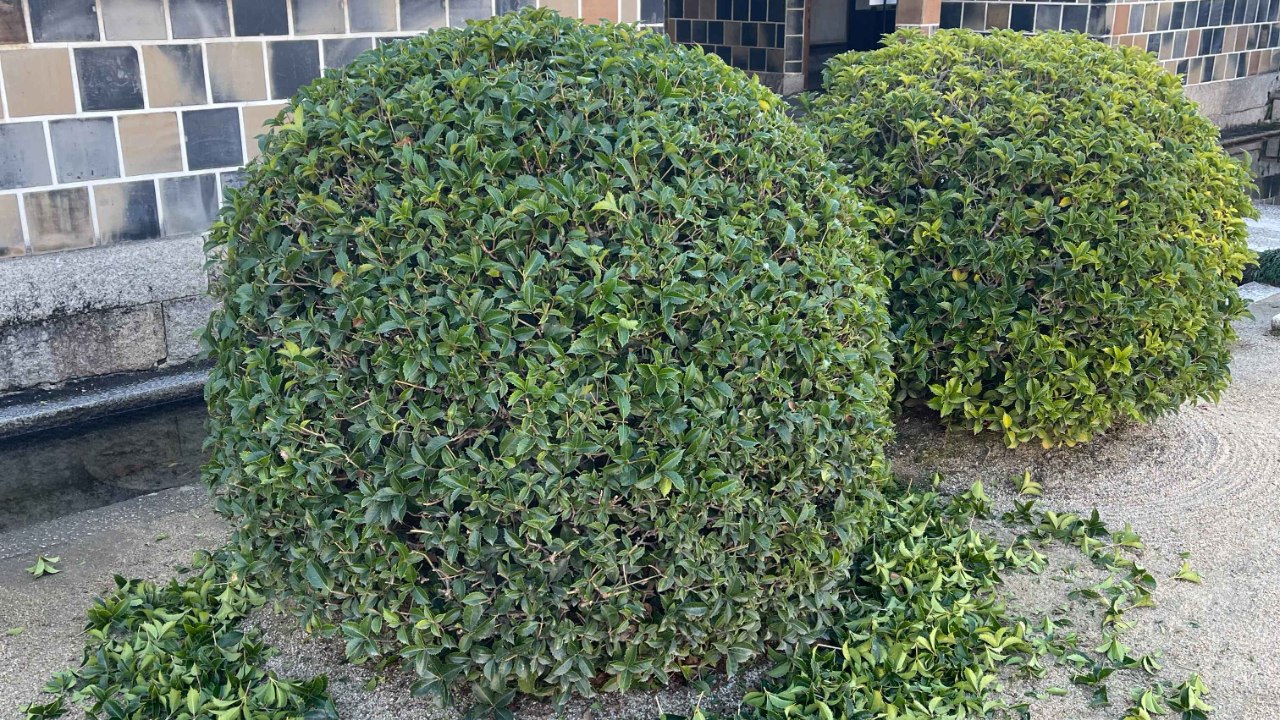 先日、工芸・東洋館中庭のヒイラギモクセイの剪定を行いました。 担当者が丁寧に仕上げ、さっぱりしています。 ご来館の際は、ぜひご覧ください。