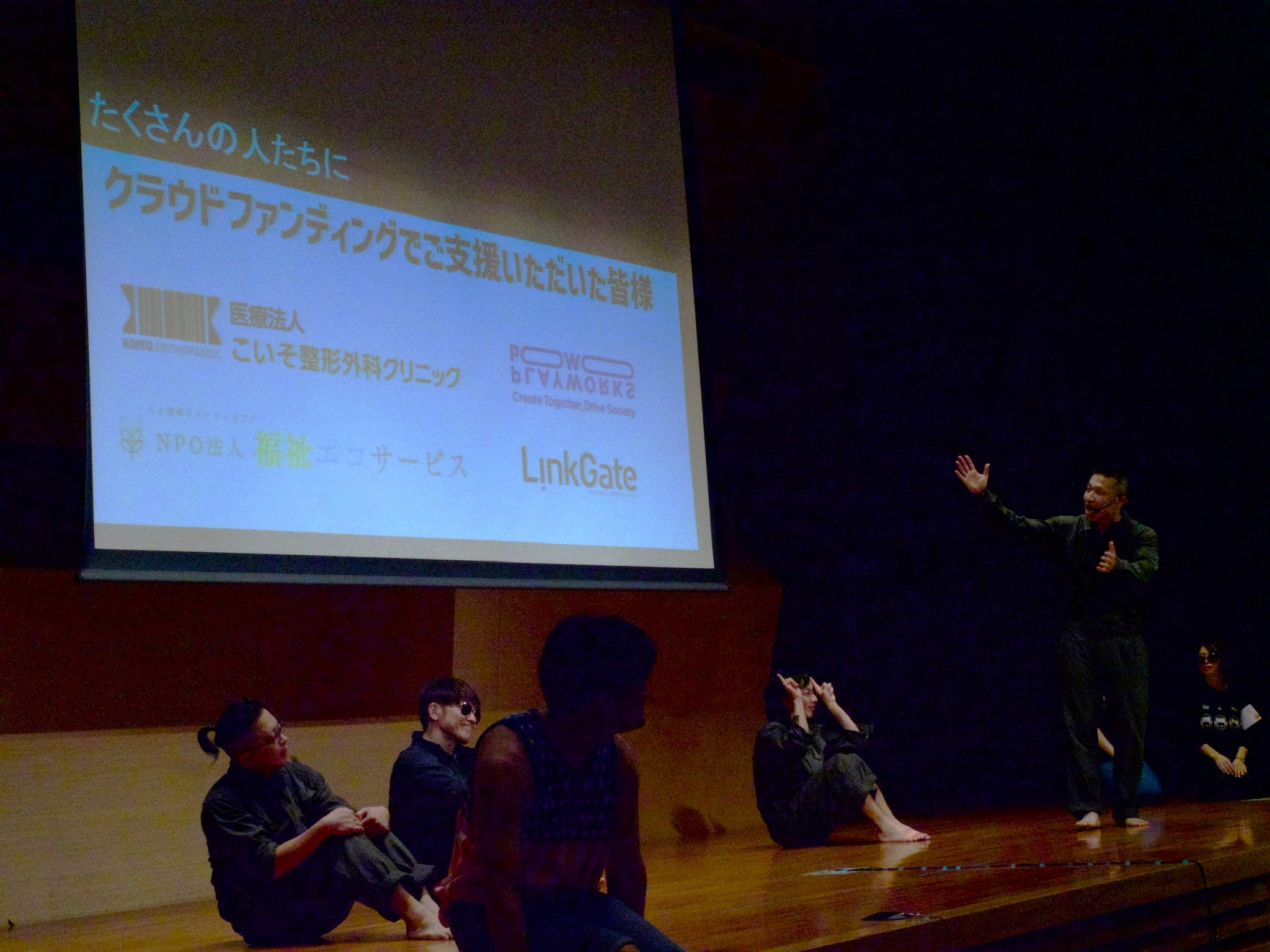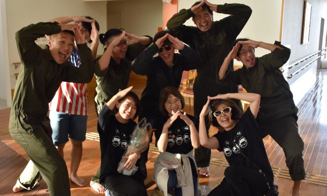 終了後は、公演中のかけあいで覚えた手話を表して、
