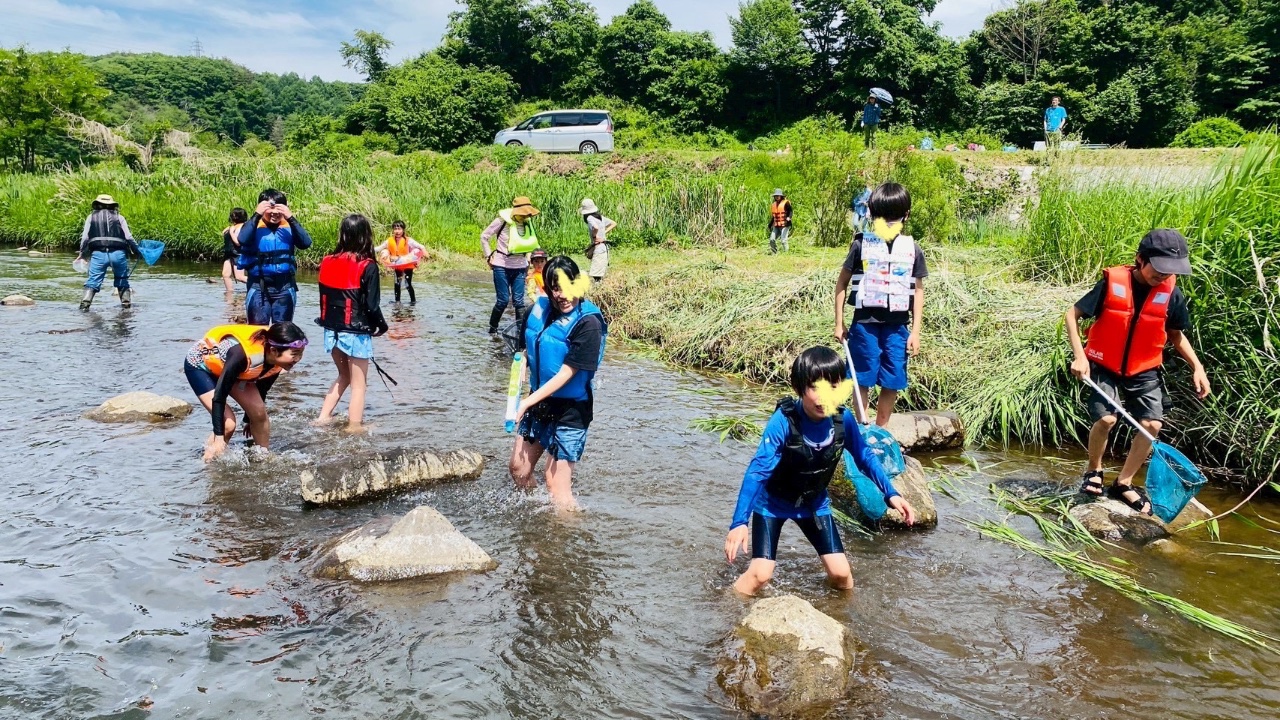 まずは自己紹介ゲームから始まり。しっぽ取りゲームを楽しんで、お昼はセルフサービスのサンドイッチ。メニューも子ども達の企画です。お腹が満たされたあとは、川遊び。浮いたり流されたり生き物を探したり…。それぞれの川遊びを堪能しました。