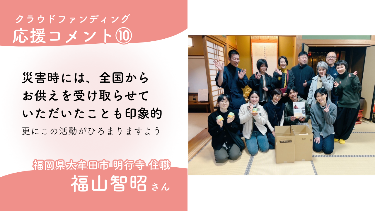 浄土真宗本願寺派 明行寺住職 福山智昭さんから応援メッセージが届きました。
