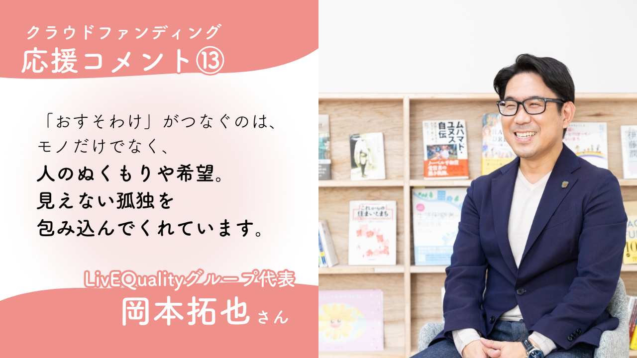 【応援コメント⑬】LivEQualityグループ 代表 岡本拓也さん
