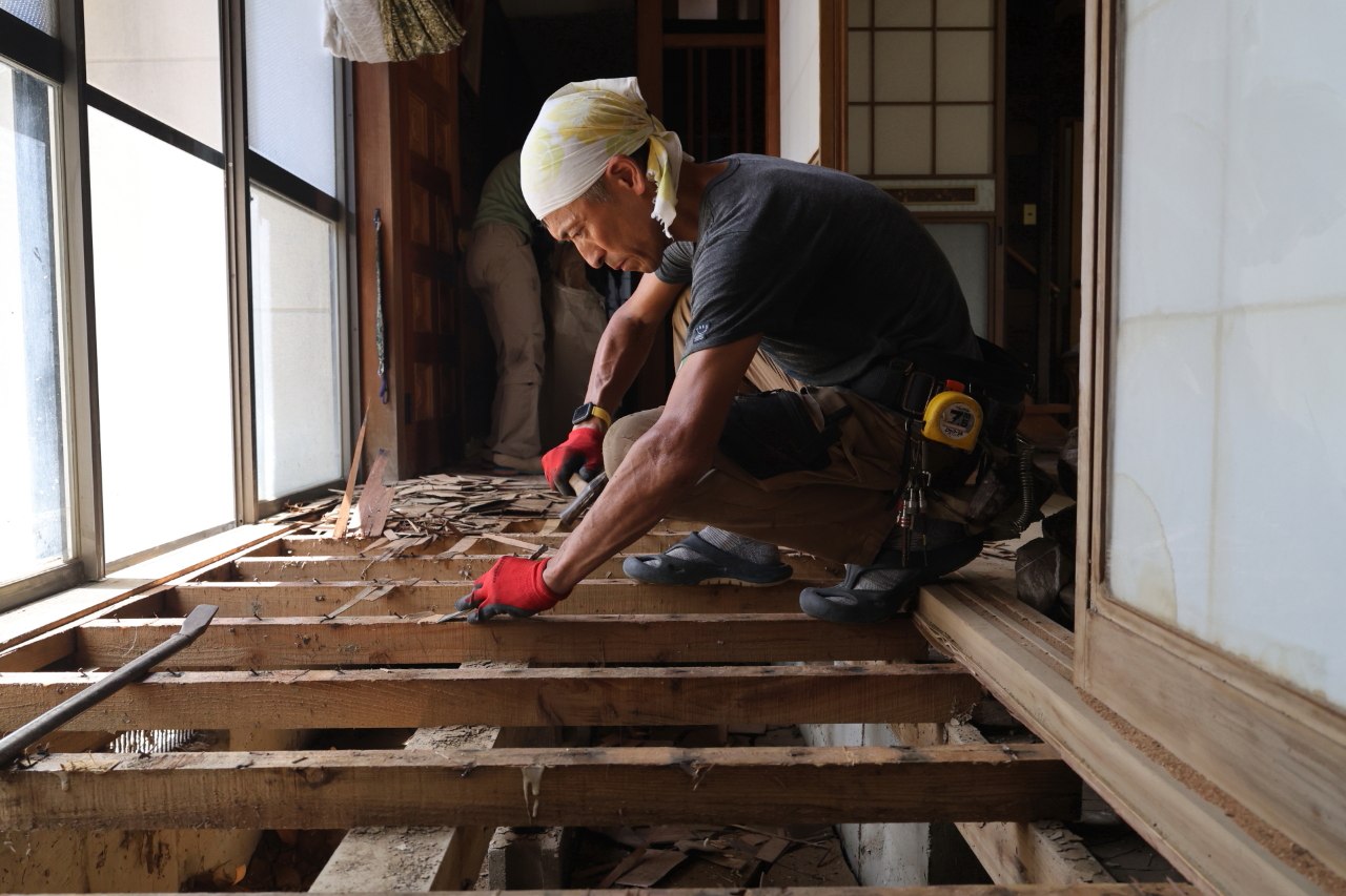 災害ボランティアセンターでは引き受けることのできない、重機や回転工具などを用いる危険を伴う活動を担っています。